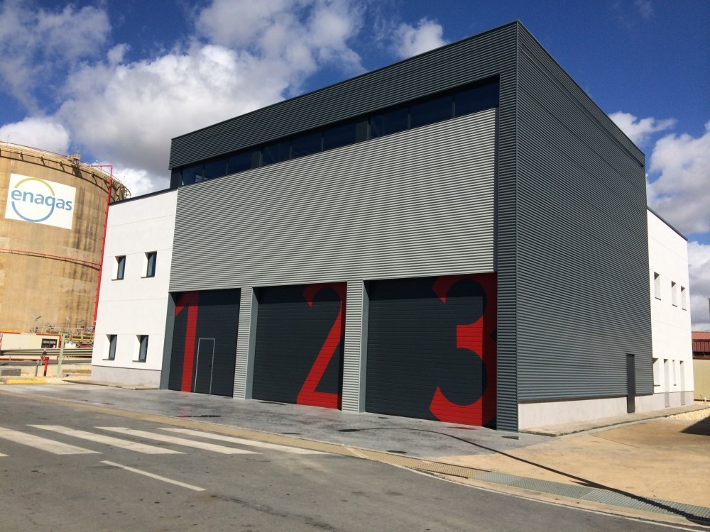 Proyecto de Ejecución y Dirección Facultativa de una parque de bomberos de empresa situado en la planta gasística de la empresa ENAGAS en Palos de la Frontera.