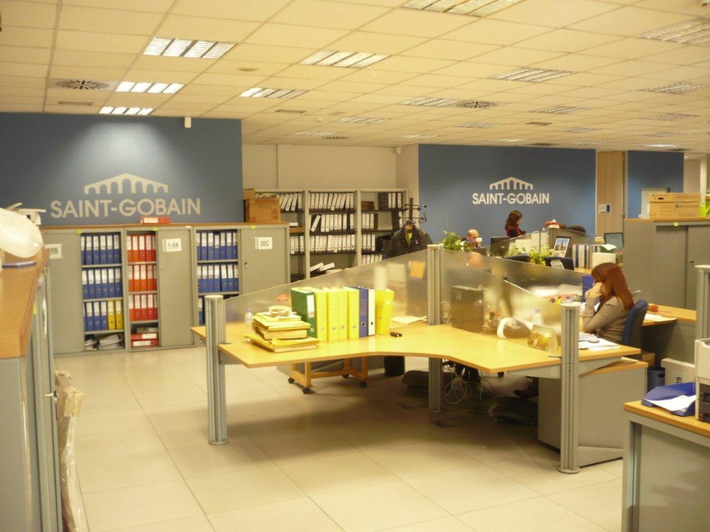 Proyecto de ejecución, instalaciones y Dirección de Obra de las oficinas centrales del grupo Saint Gobain en Madrid. Las oficinas ocupan varios módulos del edificio, con una superficie total de 2.550 m2 en los que se distribuyen las zonas diáfanas con puestos de trabajo, despachos, salas de reuniones, cuartos técnicos y zonas comunes, con comedores, office, aseos, etc.