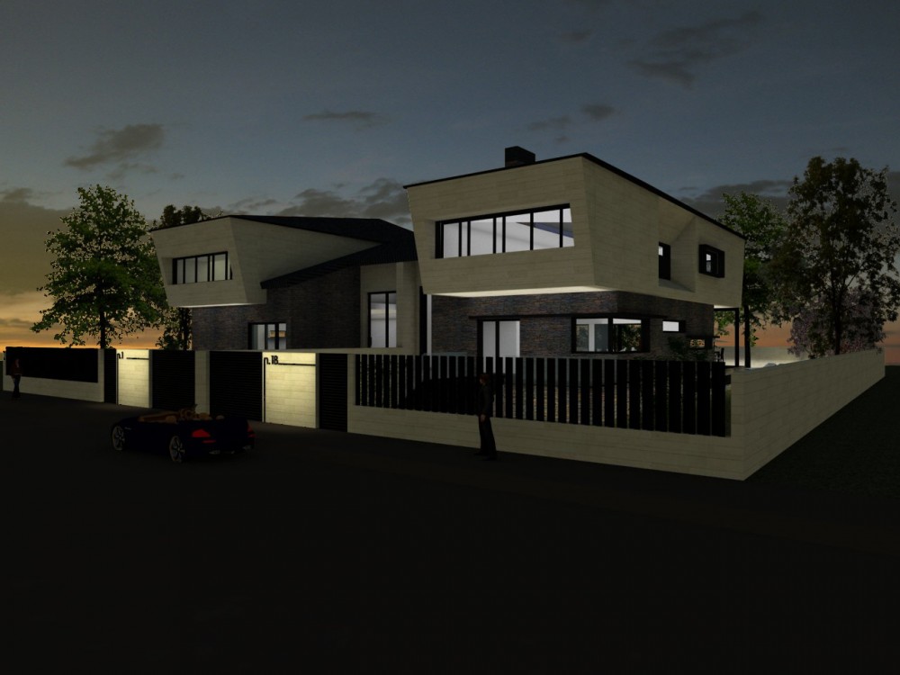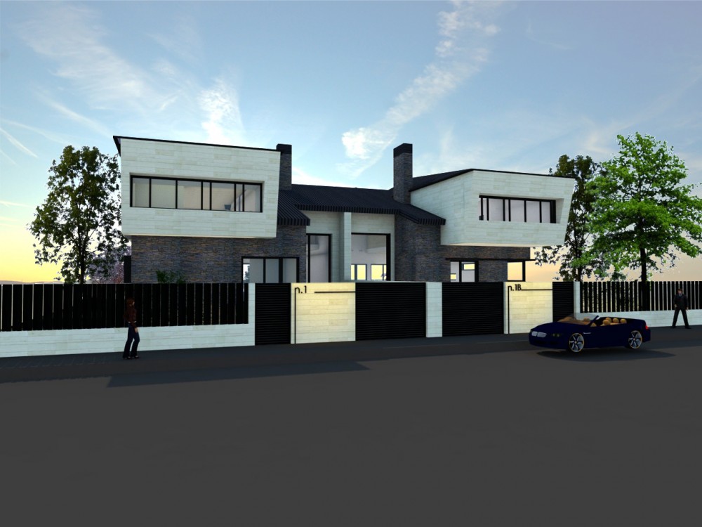 Realización del proyecto de ejecución de 2 viviendas unifamiliares pareadas situadas en Majadahonda. Las viviendas son diseñadas en base al programa de necesidades de cada uno de los propietarios,y cuentan con dos plantas sobre rasante y una bajo rasante y piscina independiente cada vivienda.